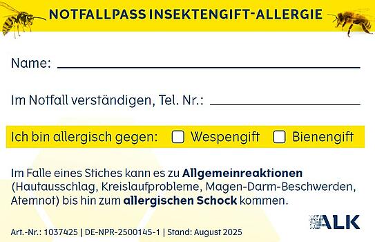 - Przybilla B. et al., Diagnose und Therapie der Bienen- und Wespengiftallergie, Allergo J, 2011; 20: 318-339.